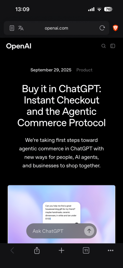 OpenAI uruchamia Instant Checkout w ChatGPT dla użytkowników w USA. Na start idą zakupy od sprzedawców z Etsy, później ponad milion od Shopify.